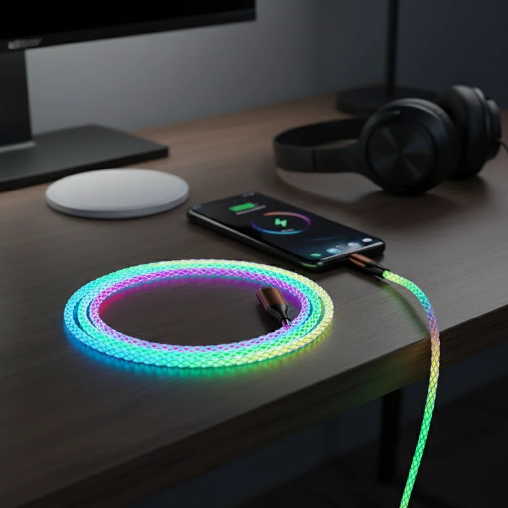 Dites adieu aux câbles lents et monotones. Ce câble 66W RGB offre une recharge ultra-rapide avec un style éclatant qui illumine votre espace. Astucieux et fiable.